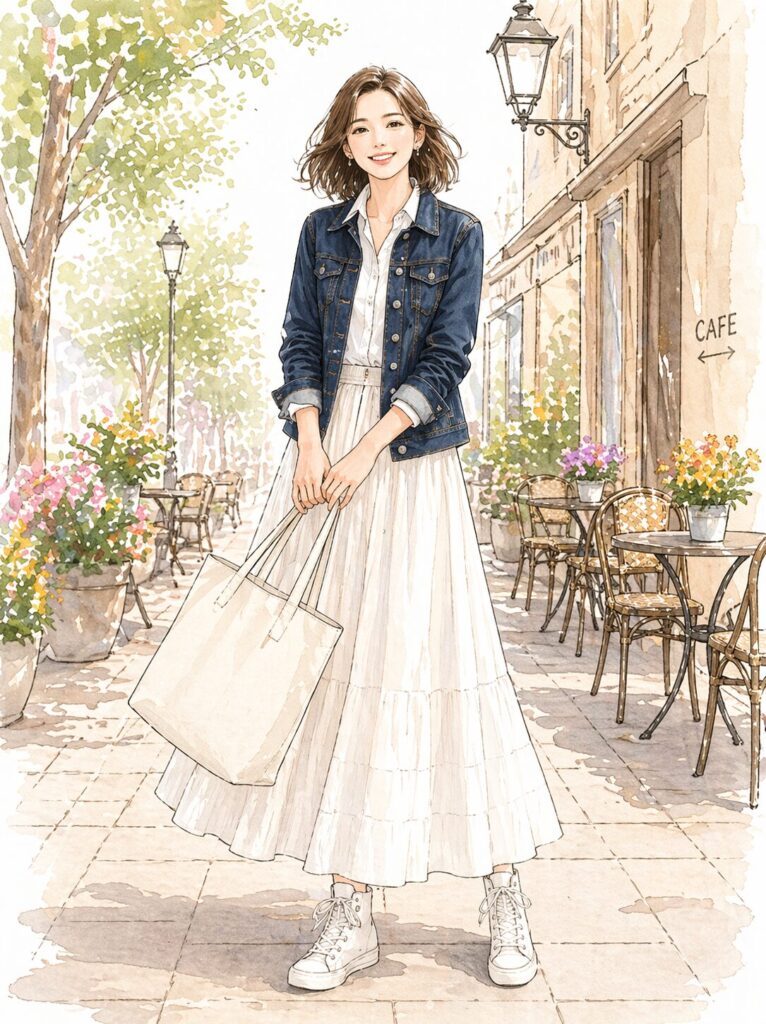 まだ足元が冷える春先。スニーカーで軽やかに、パンプスで品よく